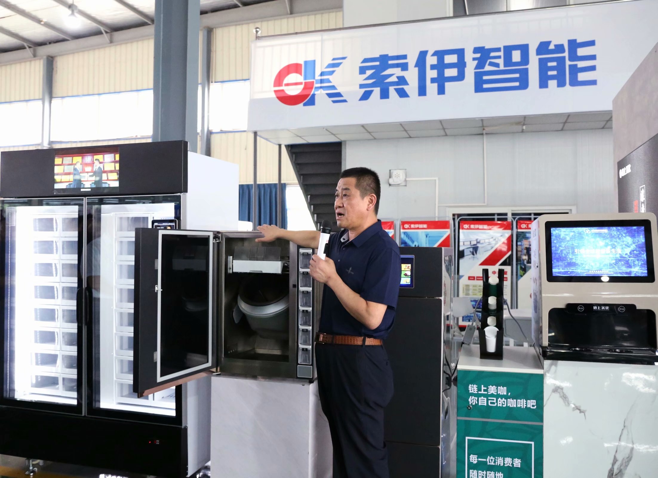第二段議程就是參觀智能化試驗(yàn)車間及索伊電器產(chǎn)品展示廳、索伊轉(zhuǎn)型展示廳。參會(huì)人員列隊(duì)來到智能化試驗(yàn)車間,王董事長首先向大家介紹了世界首創(chuàng)、中國獨(dú)創(chuàng)的智能化數(shù)字烹飪機(jī)器人產(chǎn)品,并詳細(xì)介紹了此產(chǎn)品的八大優(yōu)勢,不僅廚藝數(shù)字化、烹飪自動(dòng)化、菜品標(biāo)準(zhǔn)化、美味化、一致化,而且無油煙、無明火,全自動(dòng)清洗,紫外線殺菌,同時(shí)可滿足家餐、堂餐、團(tuán)餐等各種場景的運(yùn)用,讓千人一味,一人千味的夢想成真。當(dāng)王董事長介紹到全球領(lǐng)先、擁有100多項(xiàng)國家專利的智能化數(shù)字機(jī)器人飲料機(jī)產(chǎn)品時(shí),他的臉上更是洋溢出滿滿的自豪感,因?yàn)榇水a(chǎn)品具有五重殺菌,獨(dú)特的制冰技術(shù),四大飲品系列,海量飲品配方,全場景,滿足于室內(nèi)室外,各種高溫、高寒、高濕等環(huán)境全場景投放使用。