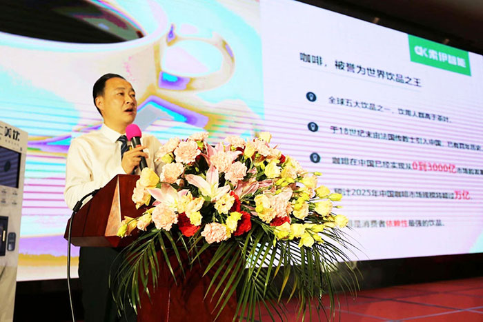 鏈上美飲咖啡飲料機銷售公司總經理鄭彬對會議政策進行解讀