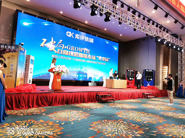 5月29日的上午,來自全國將近400位商家,只需要從君瀾大酒店步行一分鐘,就可以到索伊智能咖啡飲料機的生產線參觀,這家君瀾大酒店是索伊多元化發展的一個支點,同時也將是“愛餐”授權、索伊制造的世界首創、中國獨創的“味霸”機器人廚師菜品研發基地。從無人自助智能咖啡飲料機到智能機器人廚師,加上智能格子柜、智能售賣柜、智能生鮮自提柜等一系列智能產品,安徽索伊從來沒有像現在這樣擁有一個如此巨大的市場空間。