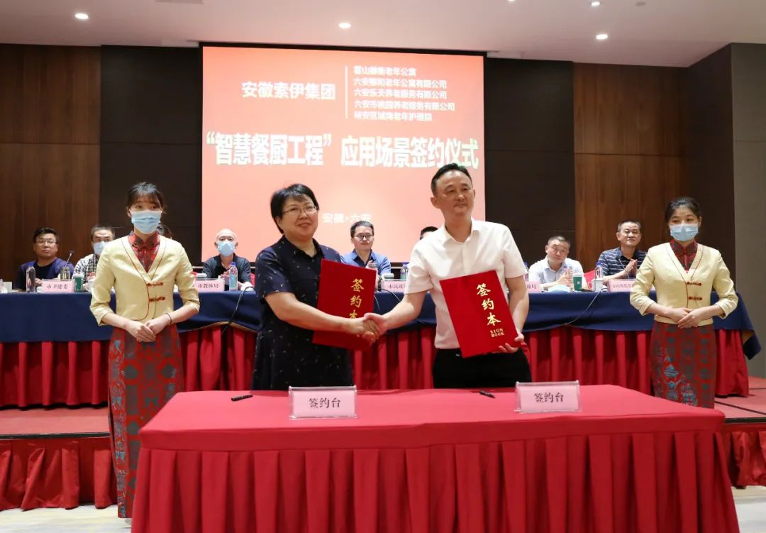 6月10日下午,市智慧餐廚工程推進領導小組辦公室組織召開六安市“智慧餐廚”工程應用推廣會議,市直經信、民政、財政、商務、市監、教體、衛健、文旅等多部門、市內部分養老機構、學校、醫院相關單位參加。會上,市民政局與安徽索伊集團舉行了《養老機構“智慧餐廚”建設戰略合作協議》簽約儀式,5家養老機構與索伊達成“智慧餐廚”工程場景應用簽約。