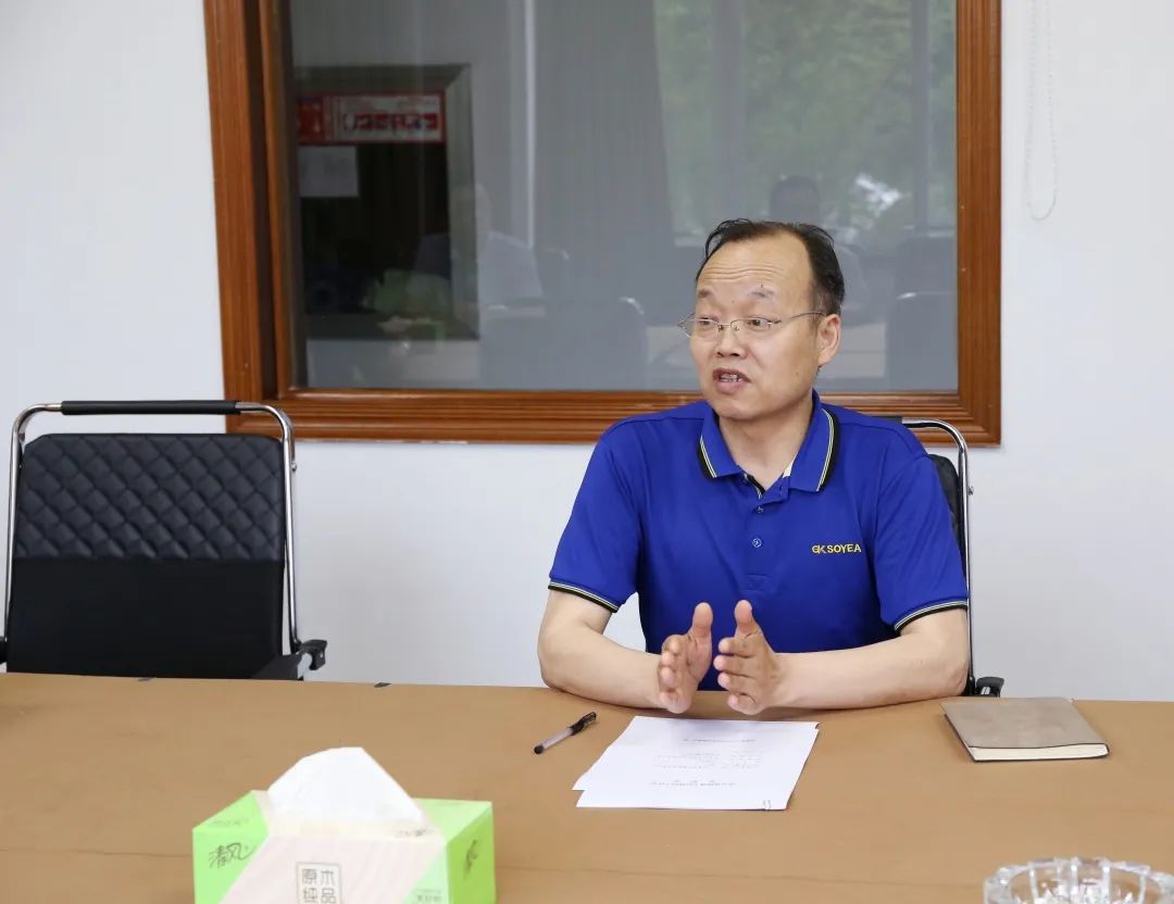 5月28日下午,原皖西學(xué)院材化學(xué)院副院長(zhǎng)晁曉琪教授,皖西學(xué)院黨委教師工作部部長(zhǎng)宗瑜(博士、教授)、電子與信息工程學(xué)院聶堯博士(副教授)和周全博士、基礎(chǔ)實(shí)驗(yàn)中心劉巍博士、電氣與光電工程學(xué)院吳克躍博士(教授)一行六人應(yīng)邀赴索伊集團(tuán)就校企合作和博士后科研工作站建設(shè)工作進(jìn)行交流調(diào)研,集團(tuán)黨委書(shū)記汪顯華、副總許必鋒、潘云峰和品管部、行政人事部相關(guān)人員熱情接待。